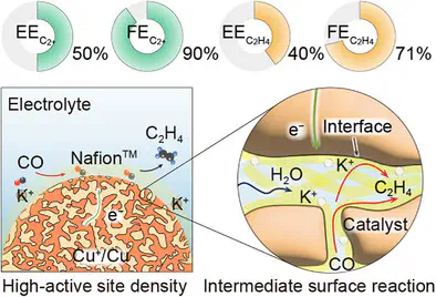 The related research findings were published in Angewandte Chemie International Edition under the title "Energy Efficiency Limit in CO-to-Ethylene Electroreduction and the Method to Advance Toward".